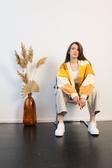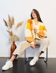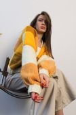 Кардиган складається з квадратів 7 кольорів та відтінків. Аби отримати такий результат ми об'єднали декілька видів пряжі з різнім але дуже схожим складом. Завдяки якісним ниткам кардиган вийшов тепленьким та м'якеньким.